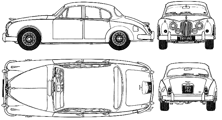 The Jaguar Mk2 was introduced in 1959 by Jaguar Cars as a substantial evolution of the earlier 2.4 and 3.4 litre saloons. Visually similar to its predecessor, the Mk2 featured a larger glass area, a revised rear axle track, and significant improvements in braking—most notably the adoption of four-wheel disc brakes as standard, a relatively advanced specification for a production saloon at the time. Powered by versions of Jaguar’s XK inline-six engine (2.4L, 3.4L, and the celebrated 3.8L), the Mk2 combined refined wood-and-leather luxury with genuine high performance. The 3.8-litre variant in particular earned a formidable reputation, capable of around 125 mph, placing it among the fastest four-door production cars of its era. Its blend of speed, handling, and understated styling made it popular not only with professionals and executives, but also in motorsport, where it achieved notable success in touring car racing during the early 1960s.